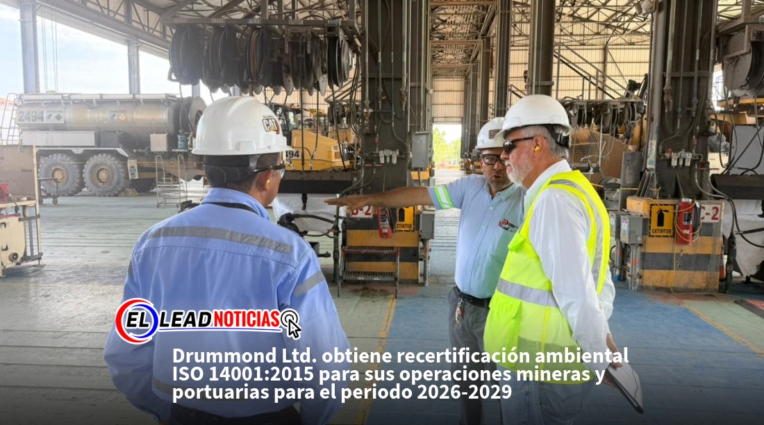 La recertificación ISO 14001:2015 estará vigente del 27 de marzo de 2026 al 26 de marzo de 2029, periodo en el que Drummond Ltd., reafirma su compromiso con el fortalecimiento continuo de la gestión ambiental y la protección del entorno en las regiones donde desarrolla sus operaciones.
