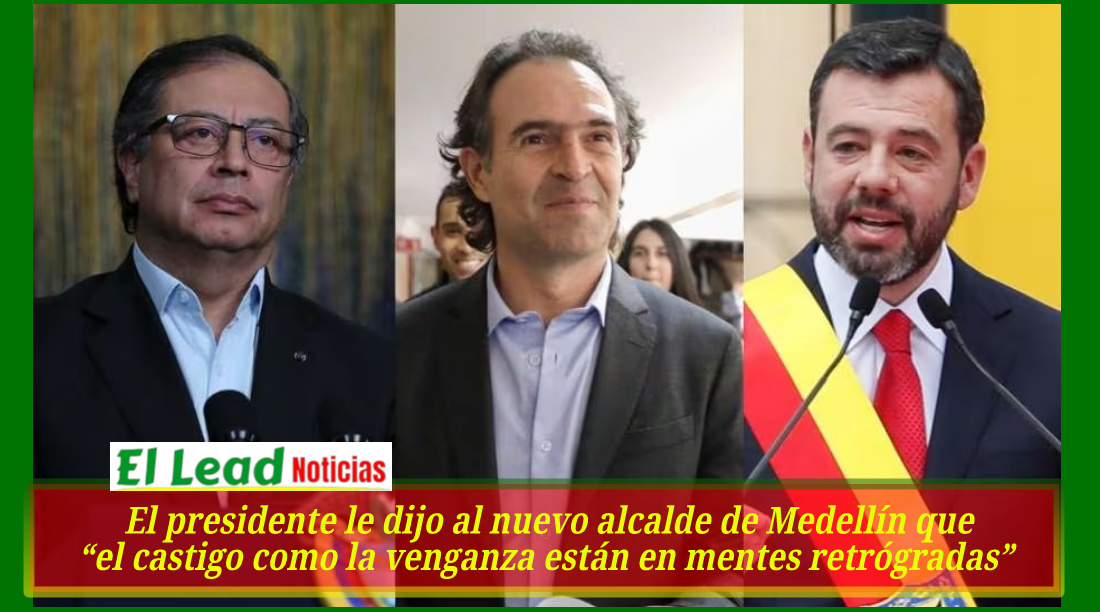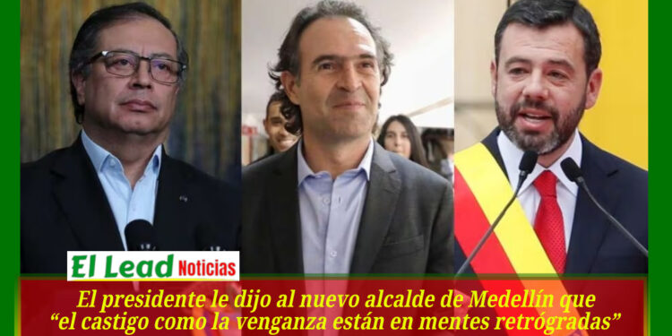 Este martes, el presidente trinó en respuesta al discurso de posesión de Federico Gutiérrez, alcalde de Medellín, quien desde la Plaza Botero le pidió que no “castigue” a Medellín y Antioquia. “En una mente democrática y progresista no está la palabra castigo. El castigo como la venganza están en mentes retrógradas”, le respondió Petro.