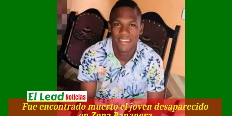 El joven que se encontraba desaparecido en el municipio Zona Bananera, Magdalena, desde hacía unos días, fue encontrado muerto en el sitio conocido como la Vuelta al Cura. Se trata de Andres Valencia del Toro de 22 años de edad.