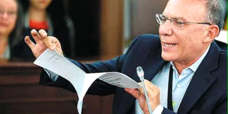 El senador Roy Barreras rompe el texto de la hundida reforma política durante su quinto y definitivo debate en el Congreso. / Cortesía
