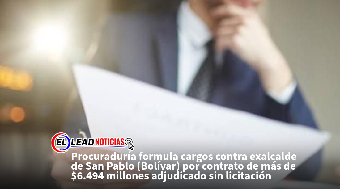 Procuraduría formula cargos contra exalcalde de San Pablo (Bolívar) por contrato de más de $6.494 millones adjudicado sin licitación